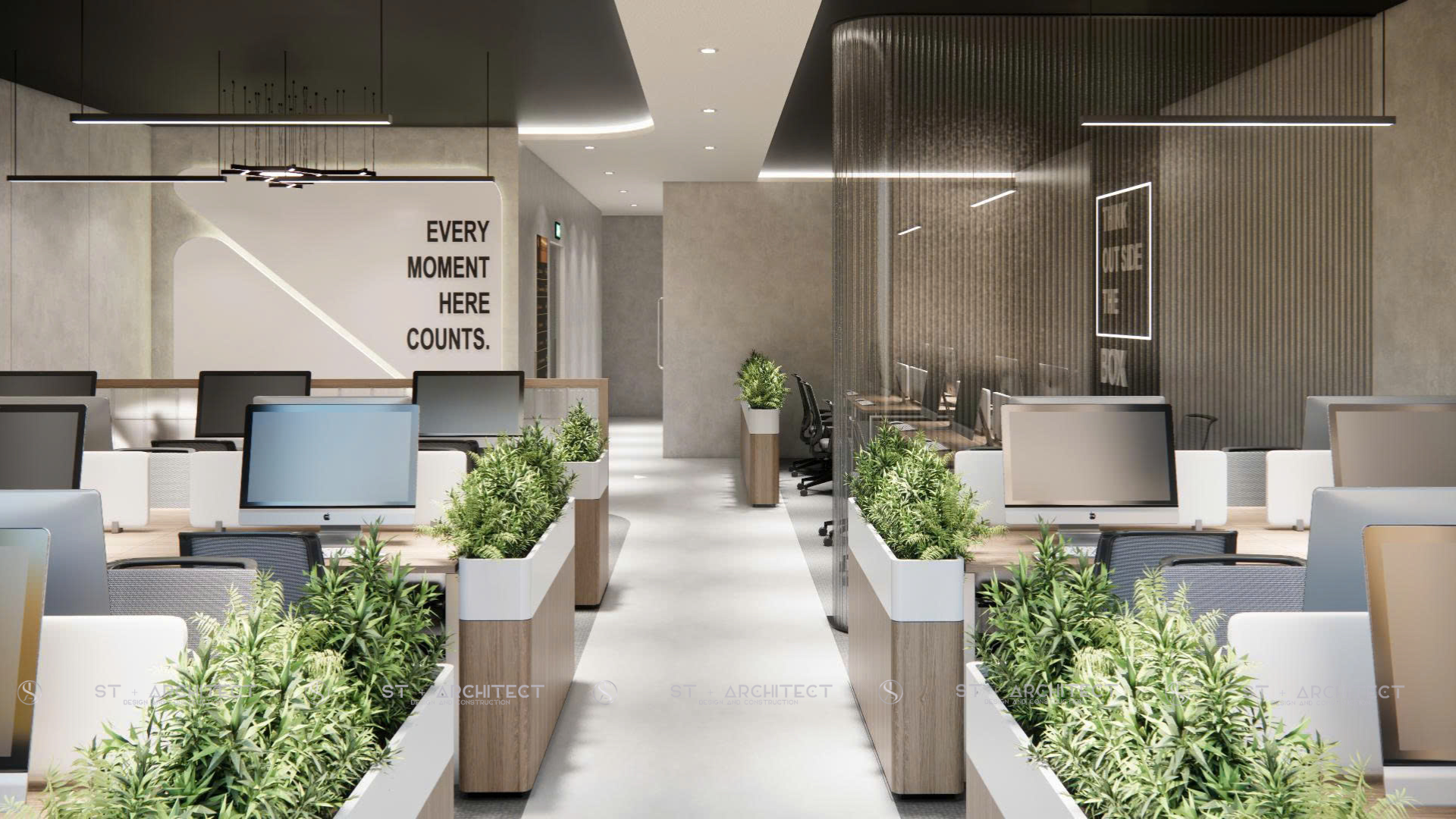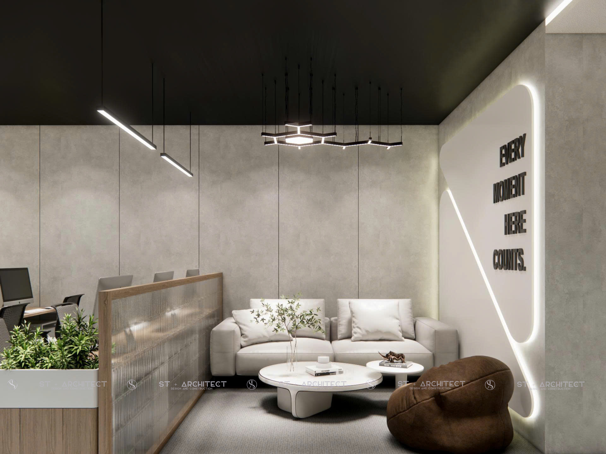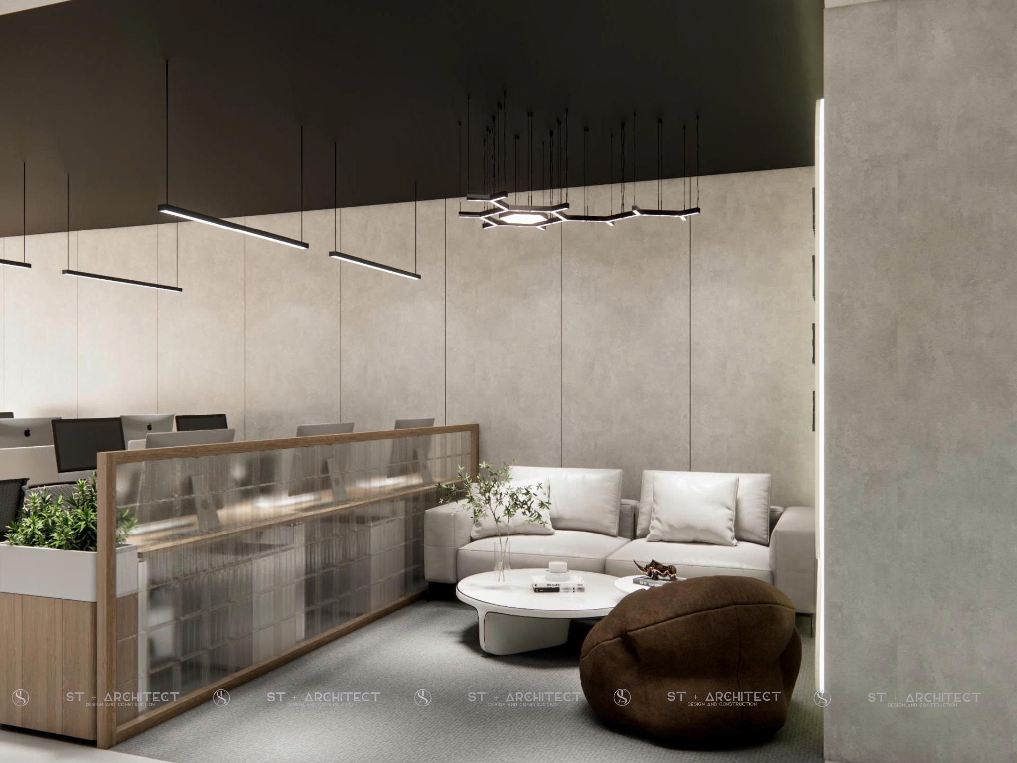 Dự án được ST Architect thiết kế và thi công, mang đến một giải pháp văn phòng cao cấp đáp ứng hoàn hảo nhu cầu làm việc, gặp gỡ, sáng tạo và thư giãn của doanh nghiệp hiện đại.