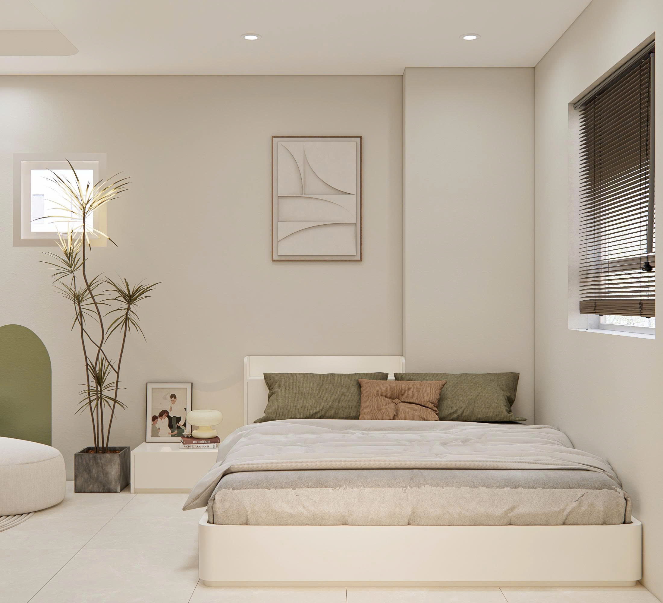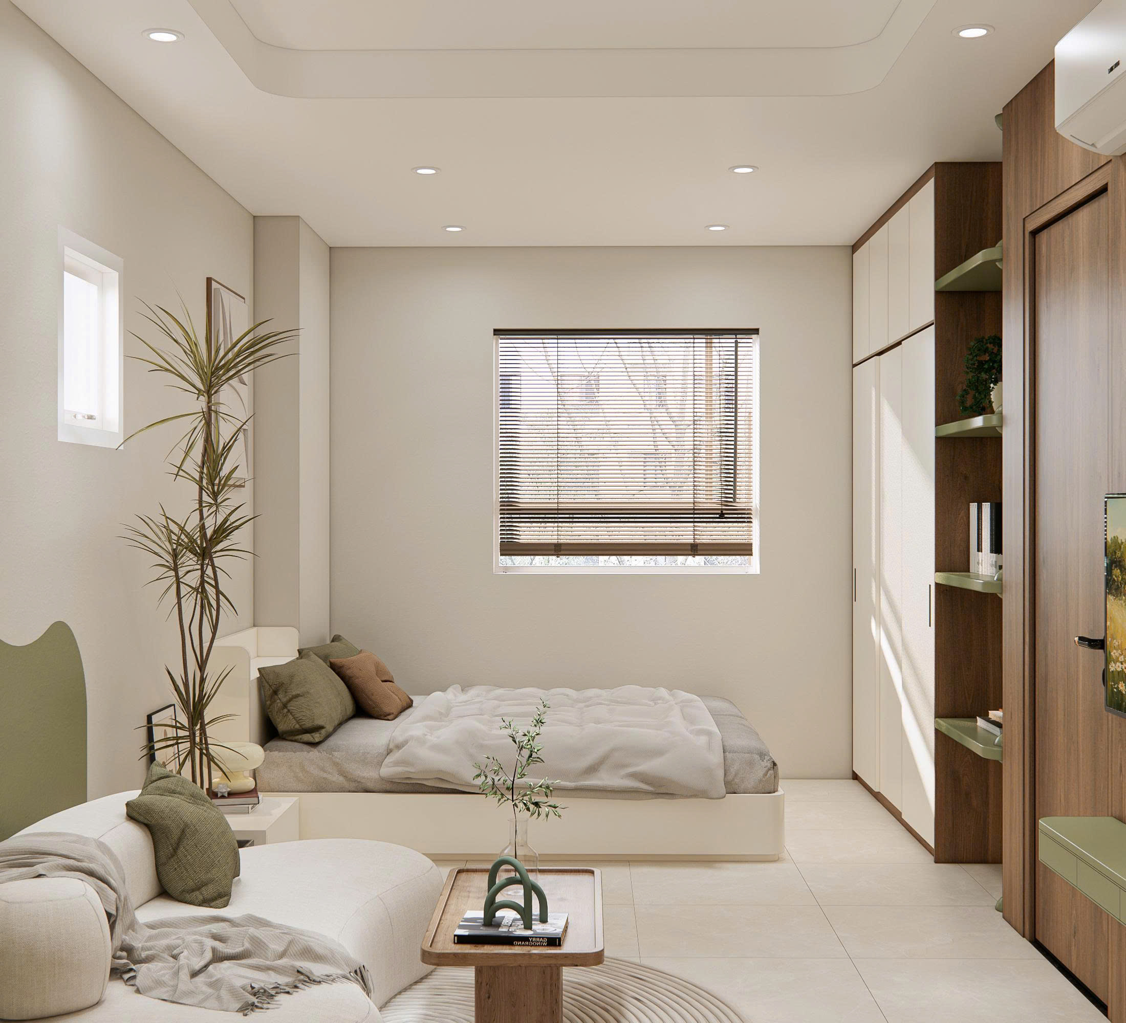 • Buổi trưa: căn hộ luôn mát mắt nhờ bảng màu trung tính.
