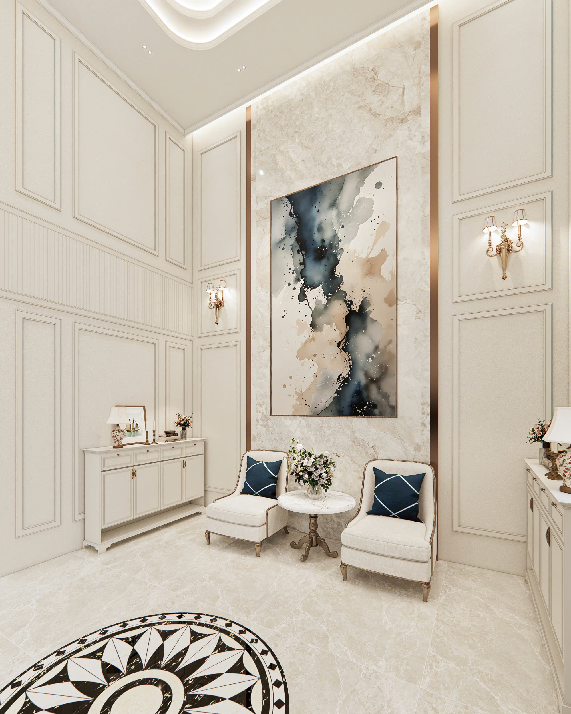 Từ một khu đất trống ban đầu, ST + Architect đã kiến tạo nên một công trình villa mang đậm dấu ấn Tân Cổ Điển châu Âu, nơi hội tụ giữa vẻ đẹp sang trọng, tỷ lệ kiến trúc chuẩn mực và trải nghiệm sống đỉnh cao.