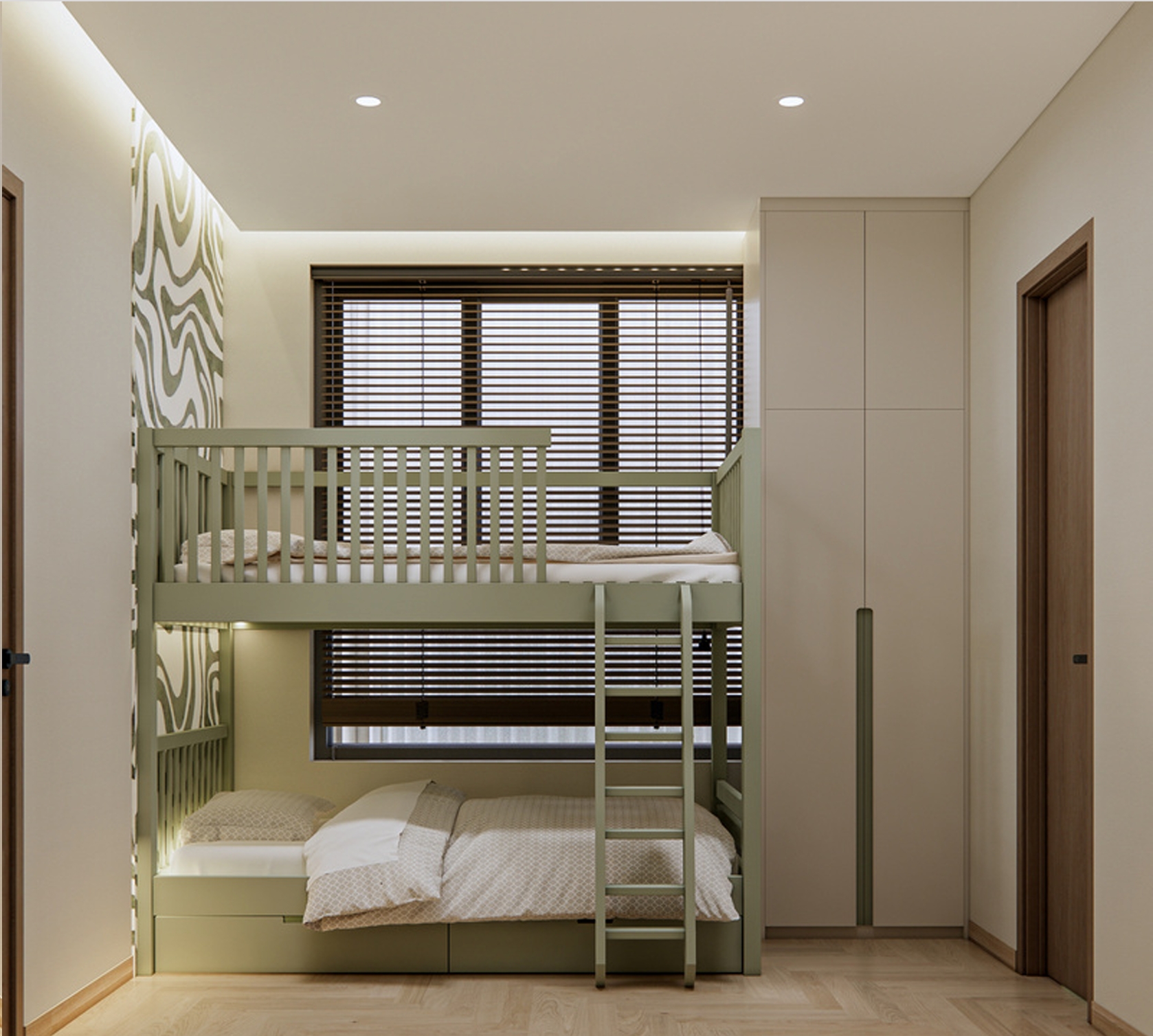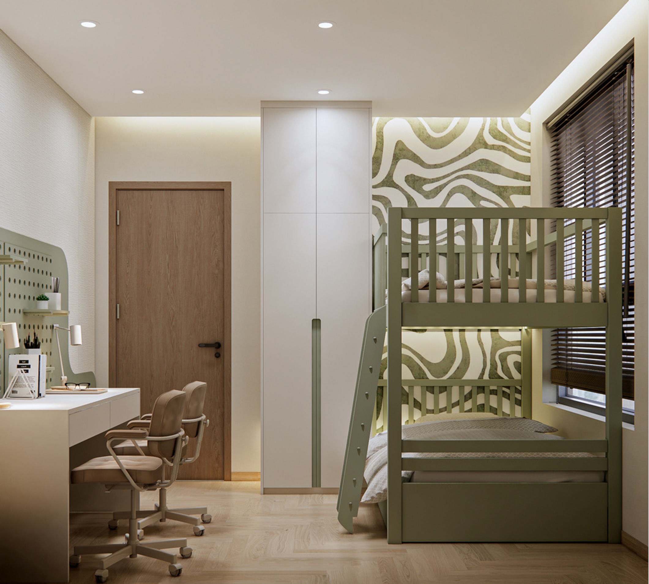 Giường tầng tích hợp giúp tiết kiệm diện tích, phù hợp căn hộ đô thị