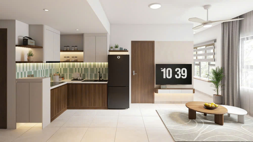 - Phòng khách và bếp mở: Tạo cảm giác không gian thoáng đãng, kết nối chặt chẽ giữa các khu vực sinh hoạt.