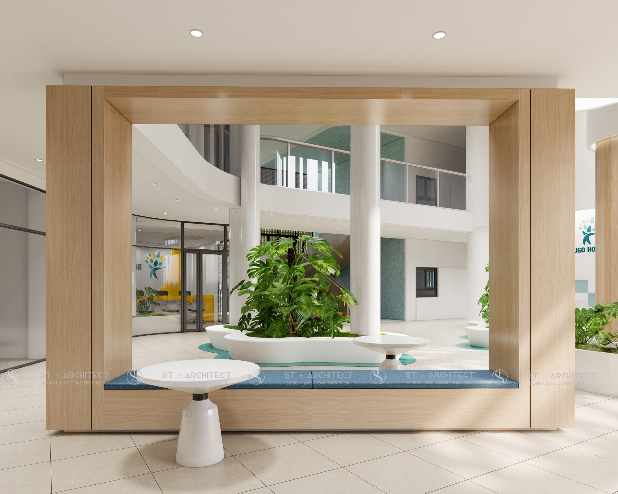 ✨ Không gian mở – thân thiện thiên nhiên: Sảnh trung tâm rộng rãi, nhiều cây xanh bên trong lẫn ngoài trời, giúp trẻ cảm nhận được sự gắn kết với thiên nhiên.