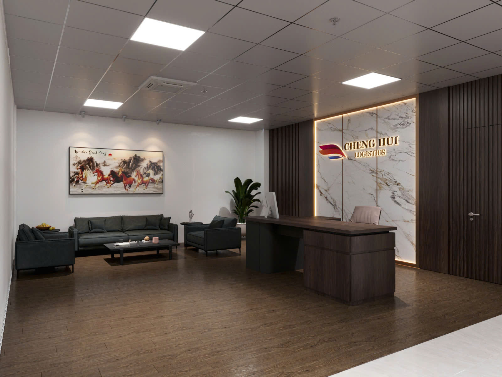 🔹 Sảnh tiếp khách & lễ tân: Ấn tượng với thiết kế sang trọng, thể hiện hình ảnh chuyên nghiệp của doanh nghiệp ngay từ ánh nhìn đầu tiên