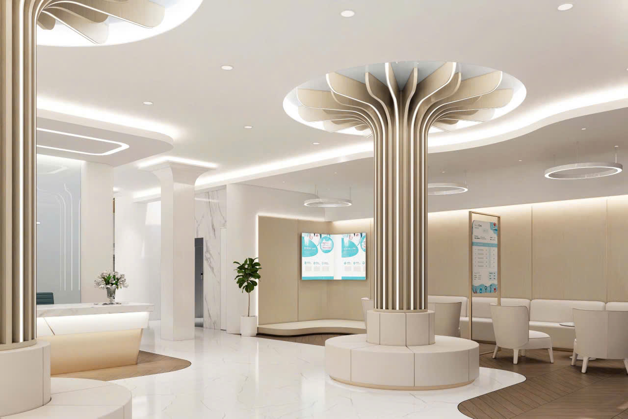- Tận dụng ánh sáng và không gian mở: Tăng cường sự thoáng đãng và sạch sẽ, phù hợp với tiêu chí y tế cao cấp.